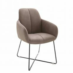 Kunstlederstuhl Mit Armlehnen In Schlammfarben Liliano Mit Edelstahl Anthrazit (2er Set)