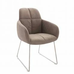 Schlammfarbener Polsterstuhl Mit Knopfheftungen Tutamu & Edelstahl Anthrazit (2er Set)