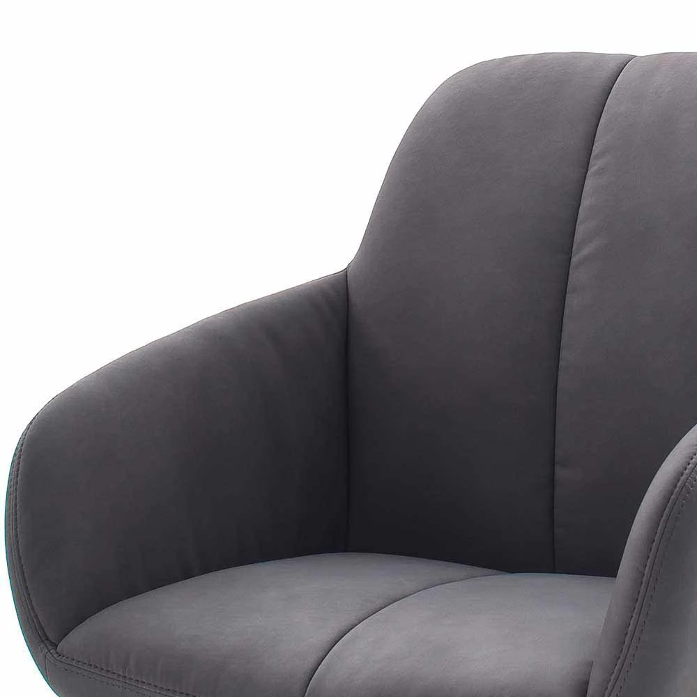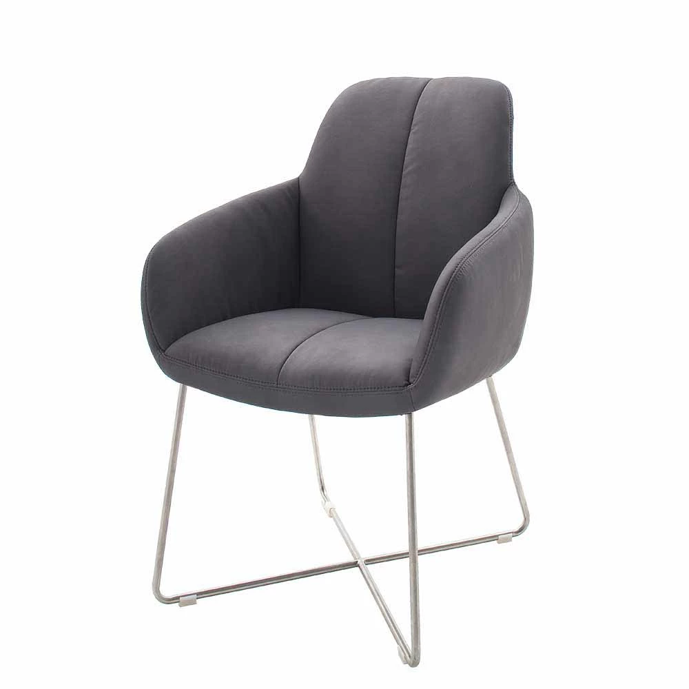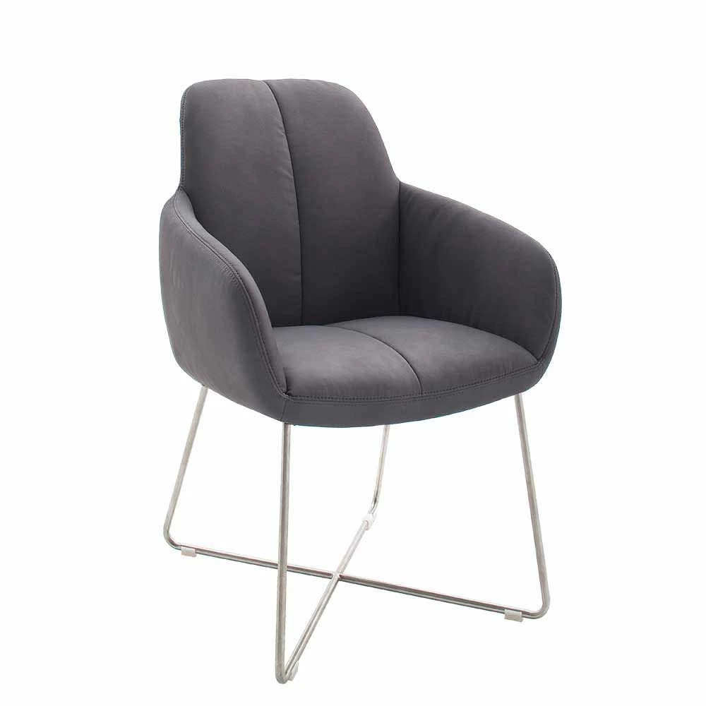Grauer Armlehnstuhl Mit Kunstleder Carlotte Auf Edelstahlgestell (2er Set)