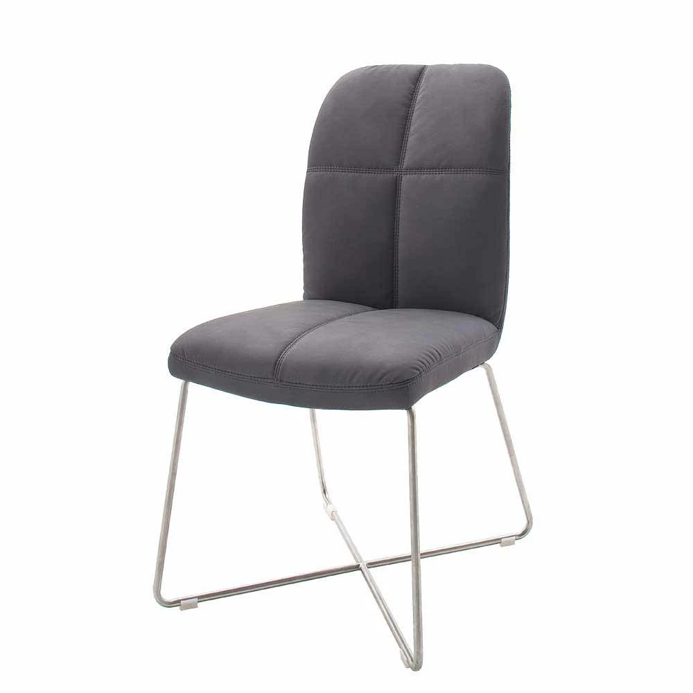 Kunstleder-Esstischstuhl In Grau Linz Mit Edelstahl X-Fuß (2er Set)