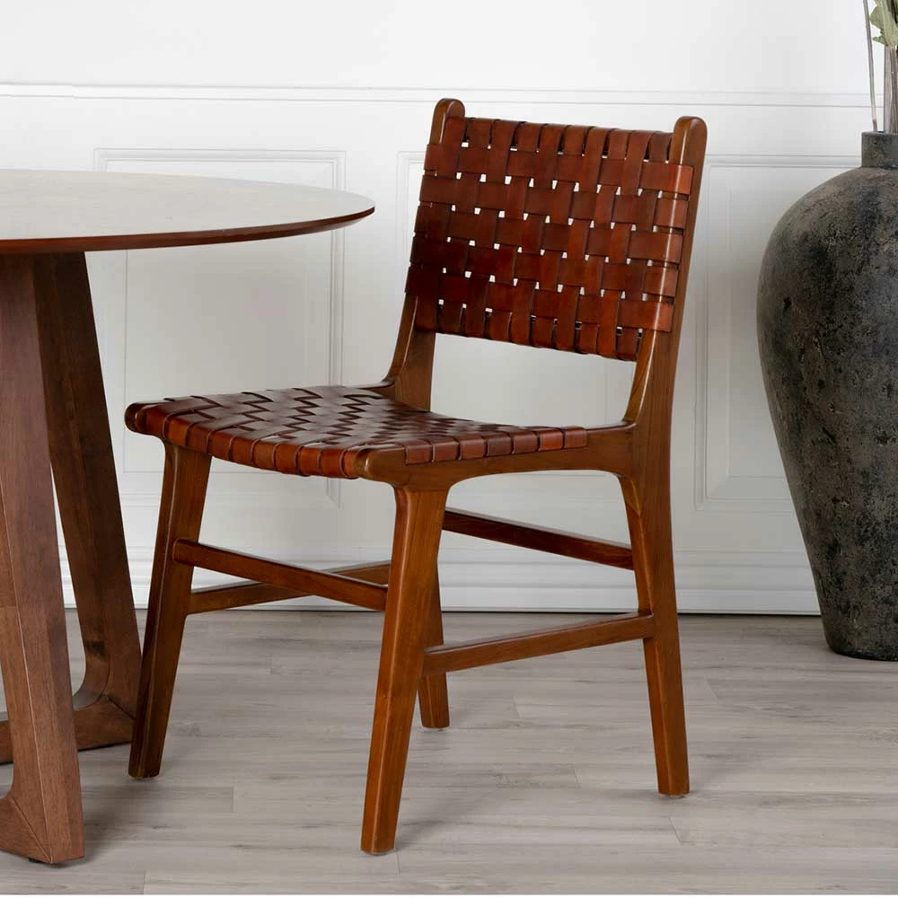 Designstühle Aus Braunem Leder Geflecht – Syolino (2er Set)