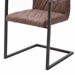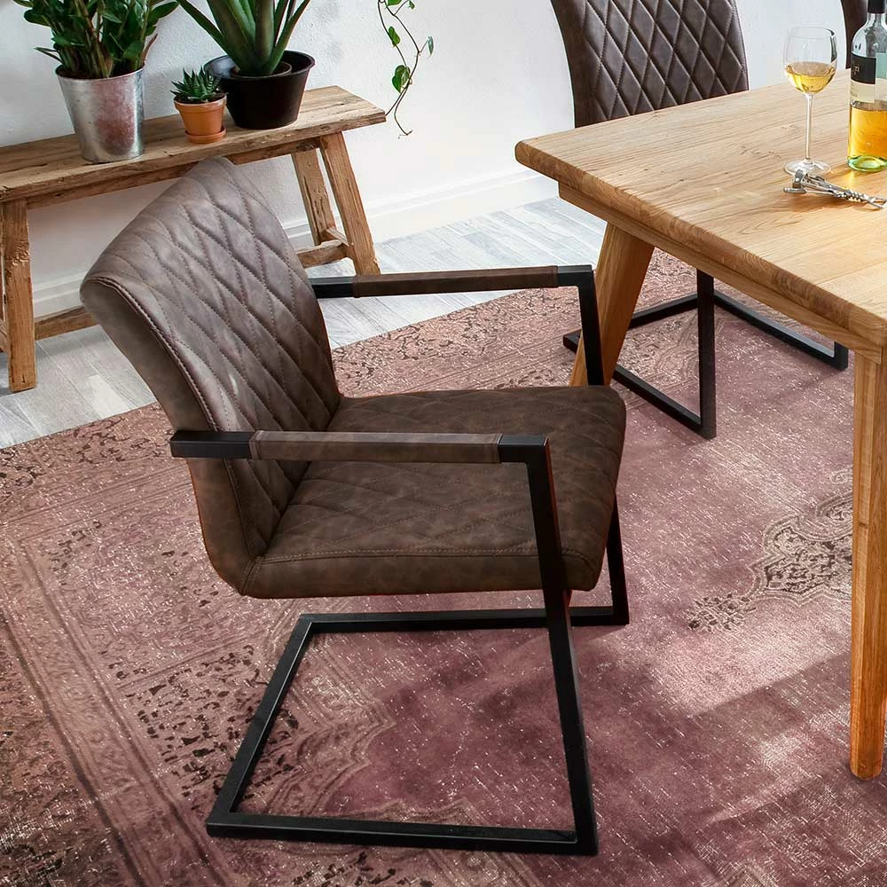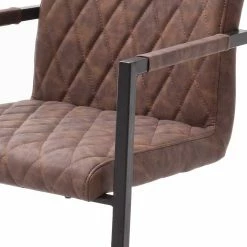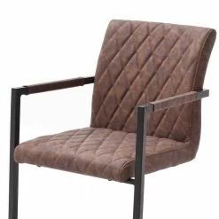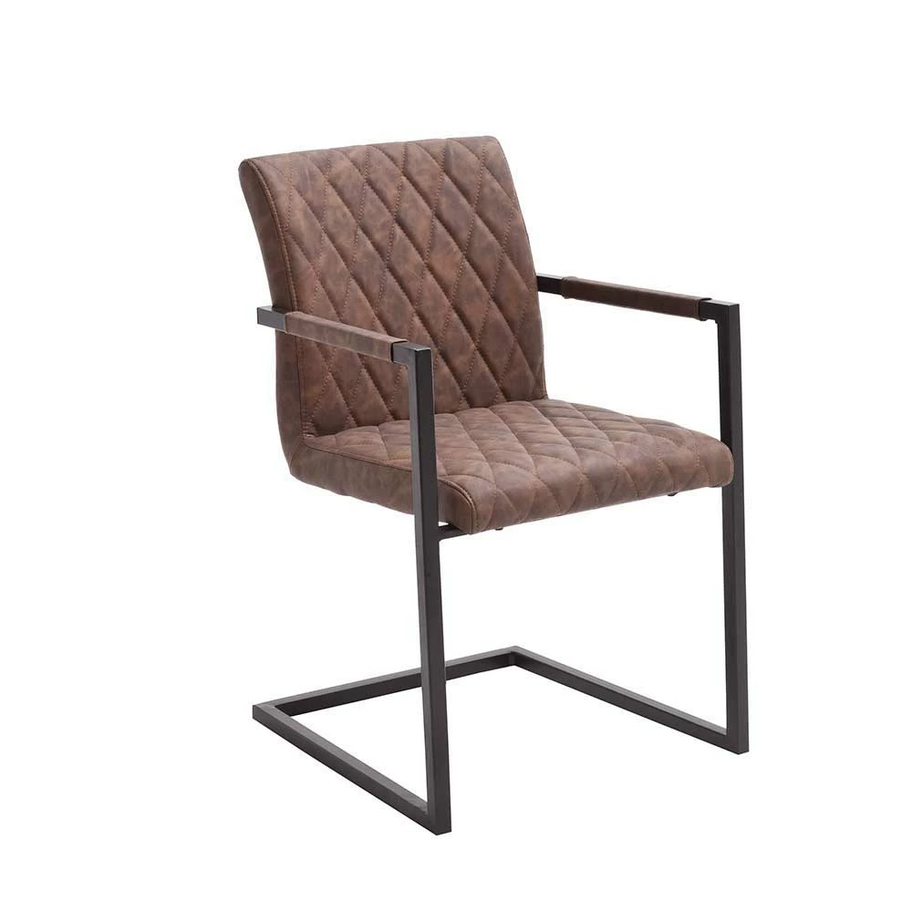 Freischwinger Stuhl Mit Armlehnen Ronald Mit Kunstleder Braun Rautenstepp (4er Set)